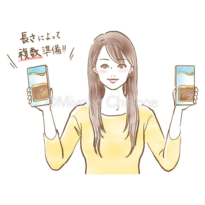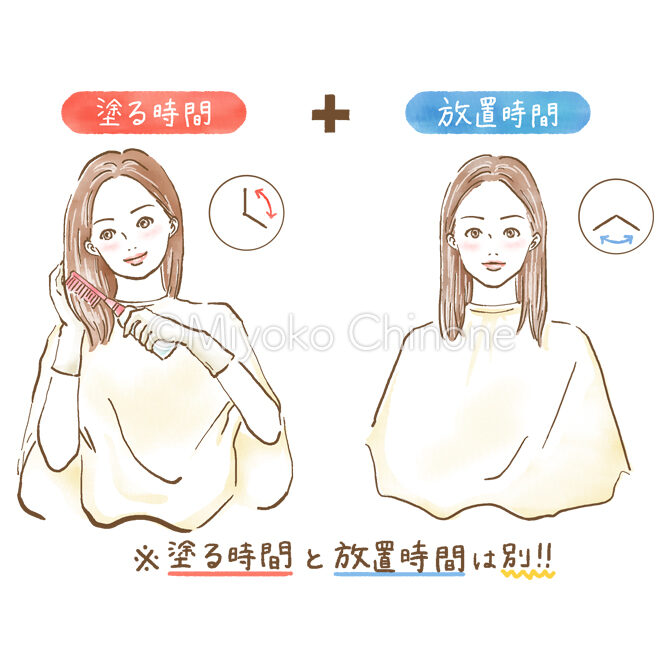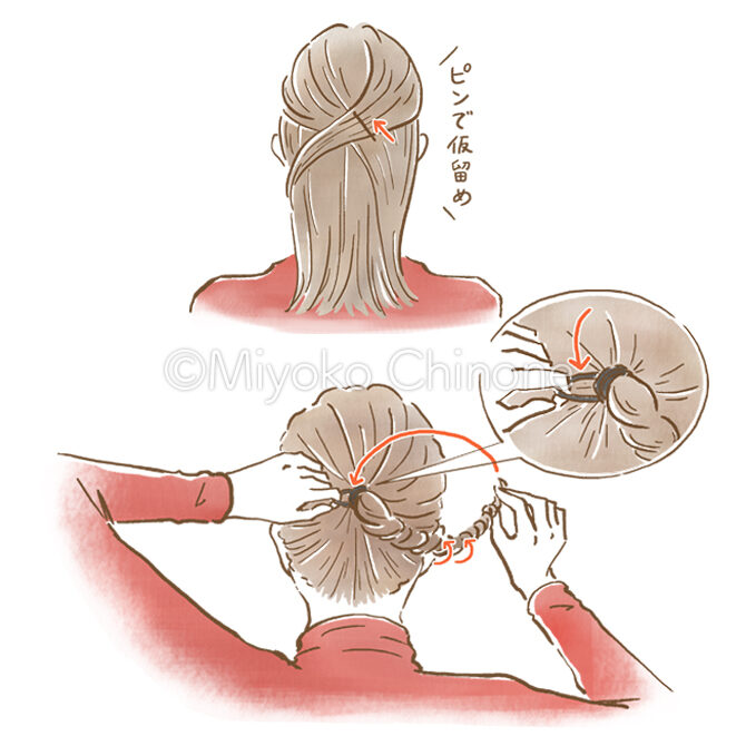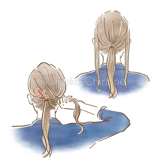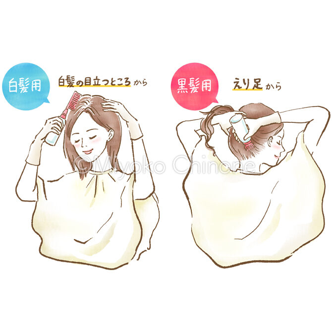 白髪が目立たないヘアアレンジや白髪染めのコツのイラストを描きました。