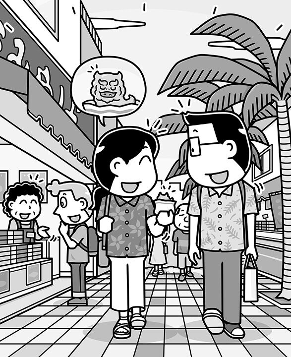 まちがい探しで描いた、「国際通り」がテーマのイラストレーションです。