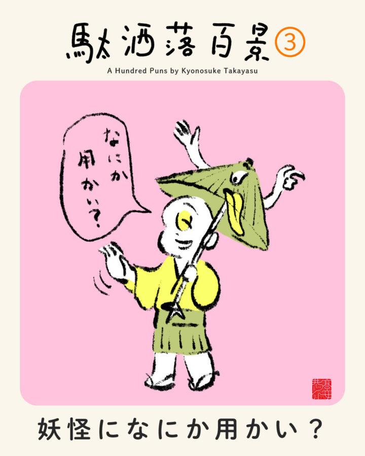 自身のつくったZINE「駄洒落百景」に収録したダジャレ。 インスタグラムでも更新中です。https://www.instagram.com/kyonosuke_takayasu/