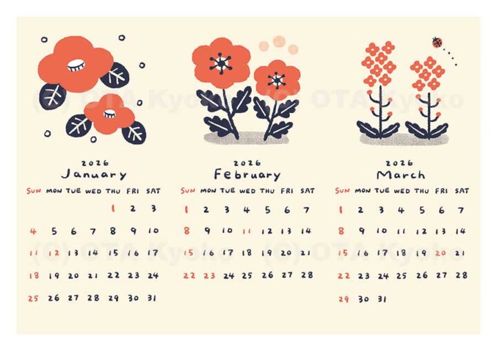 あっという間にかんたん年賀状 2026年版 ふろくのカレンダーのイラスト