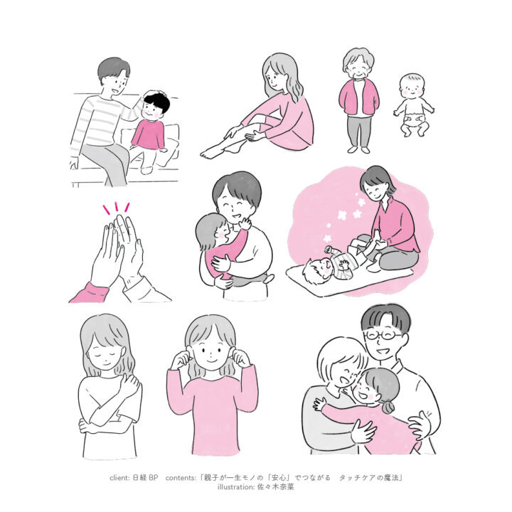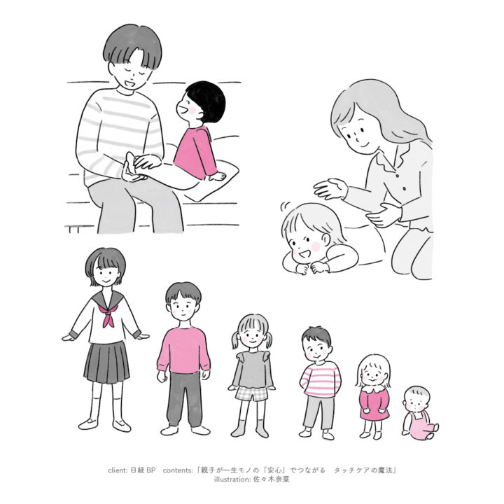 「親子が一生モノの「安心」でつながる タッチケアの魔法」装画・挿絵