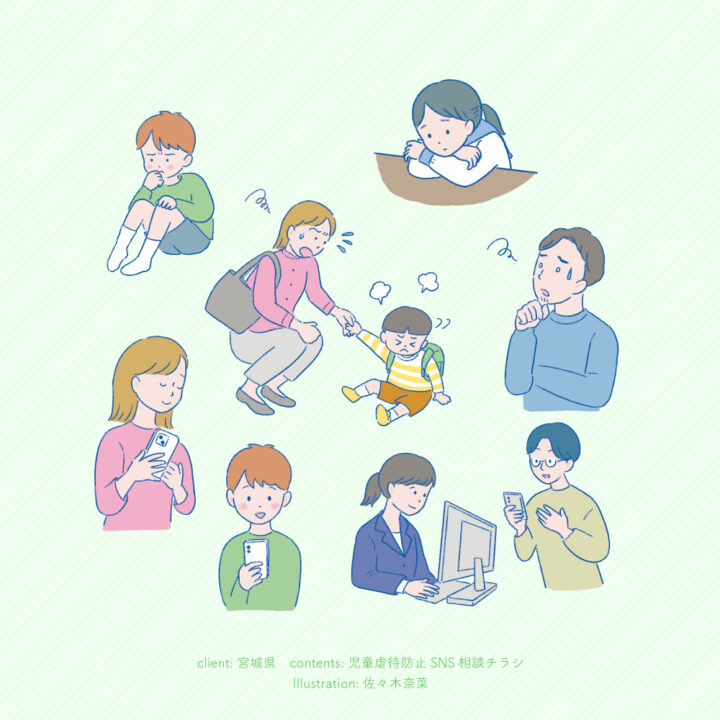 宮城県の児童虐待防止相談LINEのチラシ用イラストを制作しました。