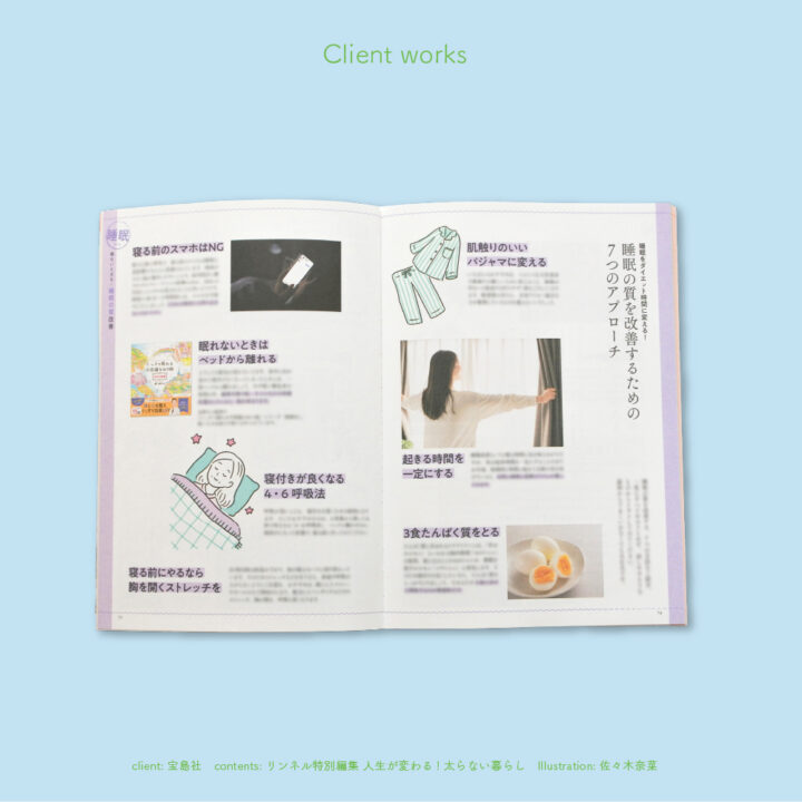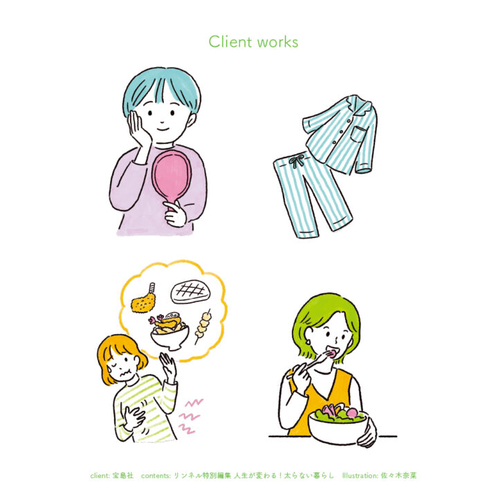 書籍・雑誌の挿絵や装丁、企業のパンフレットやWEBサイト用のイラスト、ファッションビルのメインビジュアルなどさまざまなジャンルでイラストを担当しています。