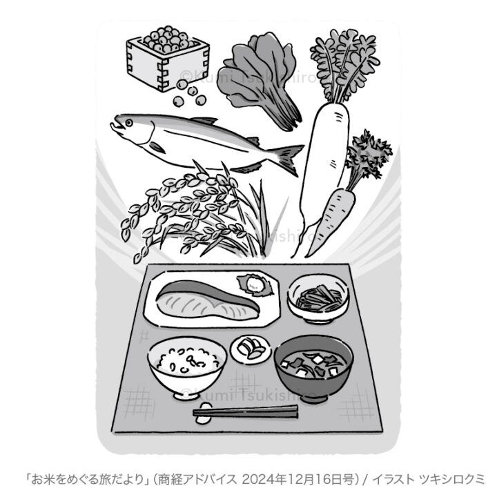 「お米をめぐる旅だより」(商経アドバイス※米穀流通新聞 2024年12月16日号)コラムのイラストを担当しました。