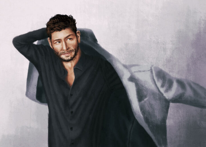 ジャケットを羽織る男