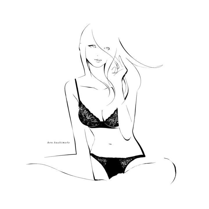 シンプル/ファッション/モノクロ/人物/女性/線画/美容