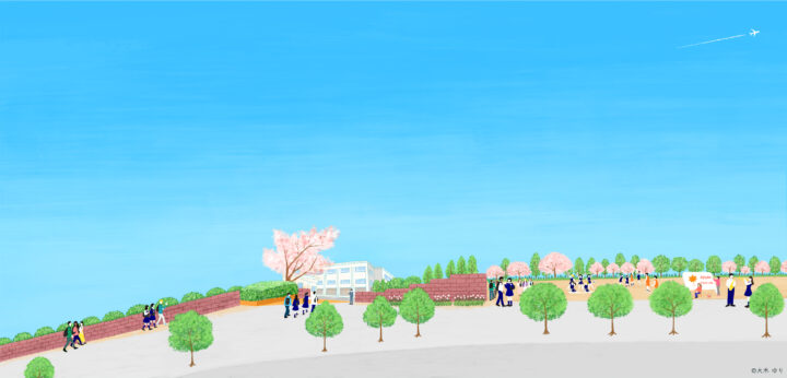 高校パンフレットのコンペのお仕事に関わらせて頂き、イラスト4点を制作しました。