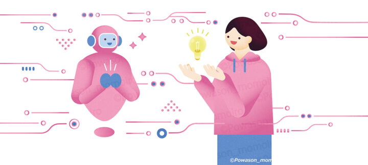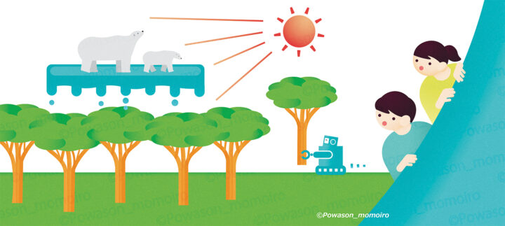見開き1点、AI、少子高齢、環境問題、グローバル化、科学技術をテーマにカットイラスト5点を作成しました。明るく、かつ落ち着いたやわらかい印象に仕上げました。