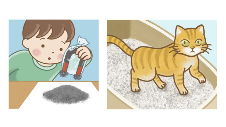 砂鉄をくっつける男の子、ペットのトイレにも利用されている沸石。