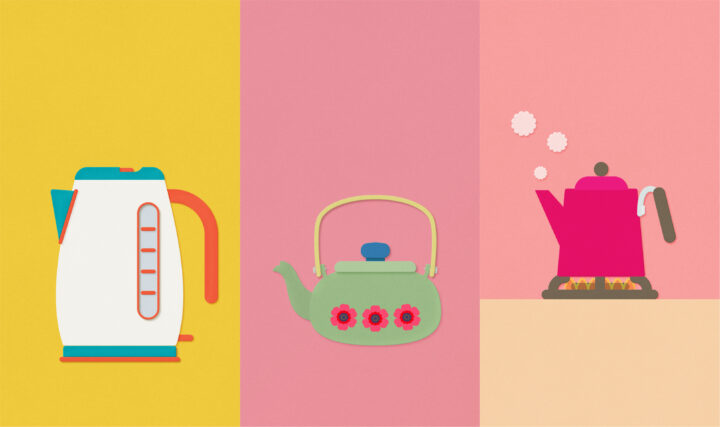 Adobe IllustratorのフラットなベクターイラストにPhotoshopでテクスチャーを加えて表情をつけています。海外在住ですがメールや必要に応じてSkype、Zoom等で打ち合わせをしまして、納品はすべてデジタルでメール添付、クラウドへのアップロード、ファイル転送サービスを利用します。