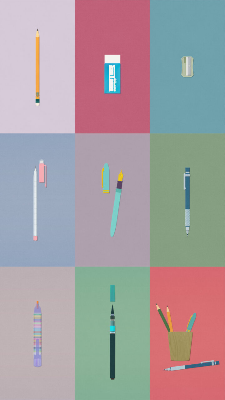Adobe IllustratorのフラットなベクターイラストにPhotoshopでテクスチャーを加えて表情をつけています。海外在住ですがメールや必要に応じてSkype、Zoom等で打ち合わせをしまして、納品はすべてデジタルでメール添付、クラウドへのアップロード、ファイル転送サービスを利用します。