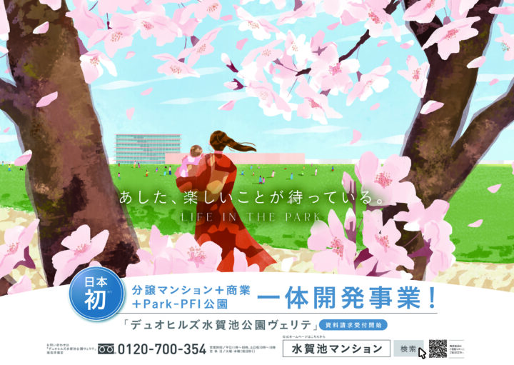 大阪府堺市・水が池公園跡地の大規模新築マンションプロジェクト広告用イラストレーションを担当しました。