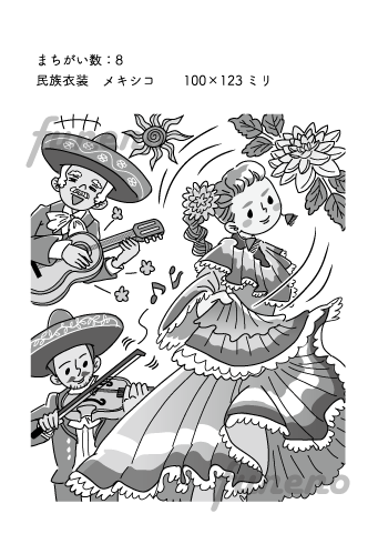 民族衣装で踊る女性とマリアッチの男性陣とメキシコの花ダリア。