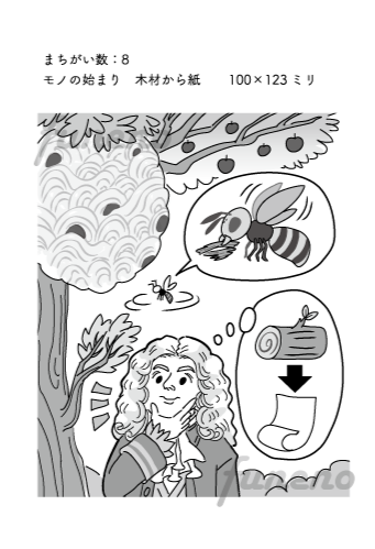 スズメバチの巣が木でできていることに気づき、木材パルプを使った紙を開発する原点ともなったフランスの科学者である、ルネ・レオミュール(1683年-1757年) の絵。