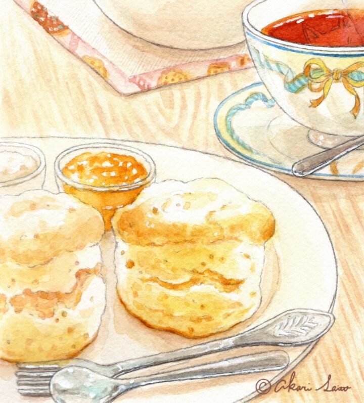 絵本カフェ(夏楓舎さん)で出されているスコーンを描きました。