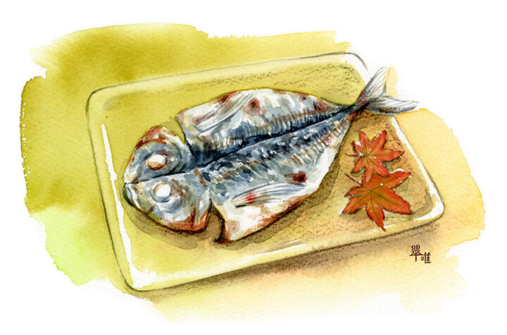 「食べもの通信」にて掲載いただいた、アジのひと塩干しの水彩イラストです。