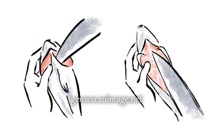 こちらのカットでは魚の開き方や構造をシンプルに、また正確に伝えています。