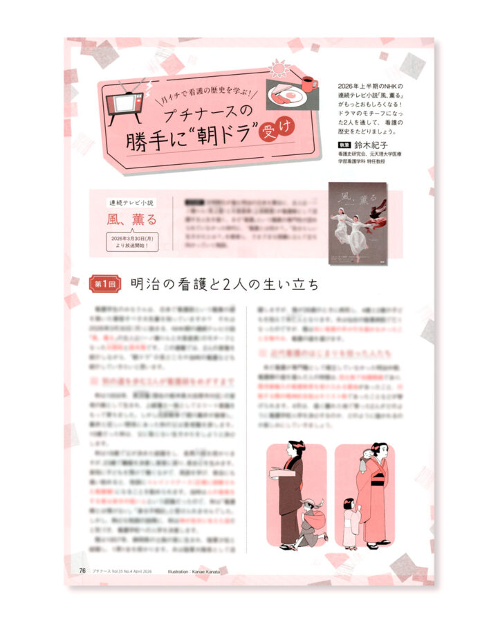 「プチナース」(照林社)2026年4月号『プチナースの勝手に”朝ドラ”受け』のイラストを担当させていただきました!
