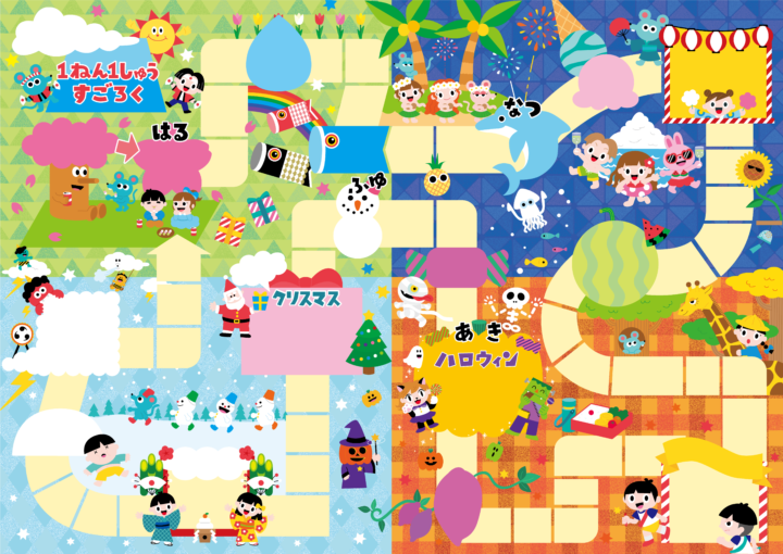 こちらは「いちねんいっしゅうすごろく」という題材で作成させていただきました。