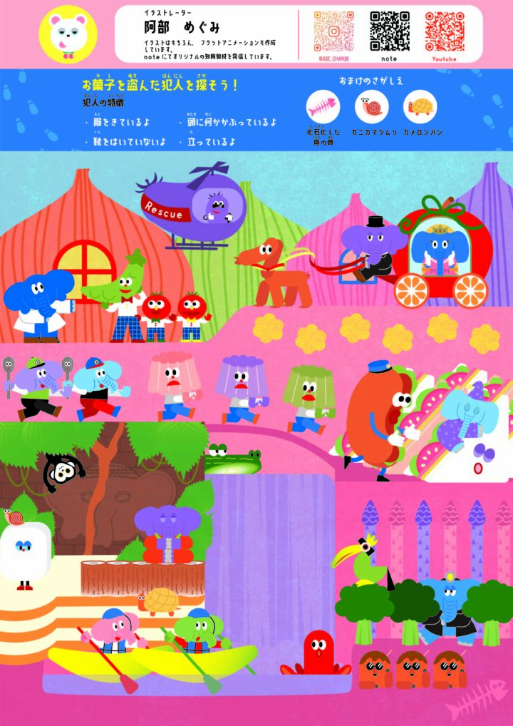 私の考案した謎解きブックの最後の犯人を探す探し絵です。
