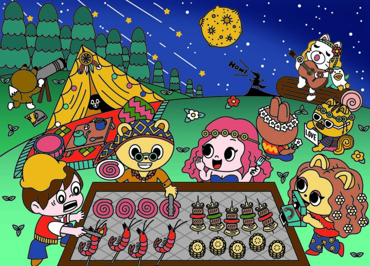キャンプの要素はもちろん夜の楽しい風景を盛り込みました。