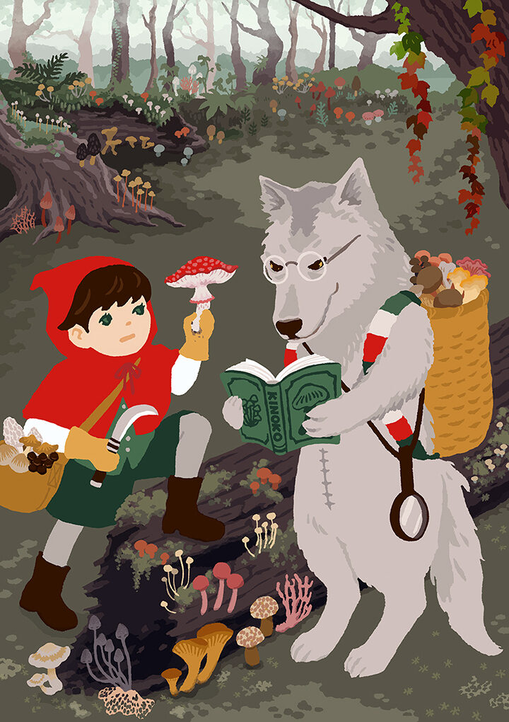 なので、オオカミは助けられ、赤ずきんちゃんはたくましくなり、ふたりは村一番のキノコ採りコンビとして生計を立てる…というその後を勝手に考えました。
