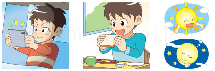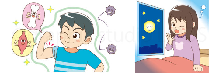 株式会社ソーシャルサービス様よりご依頼をいただき、小学校副教材冊子「未来クリエーター 未来をつくる すいみんにどきどき」に掲載するイラスト約30点を担当させていただきました。