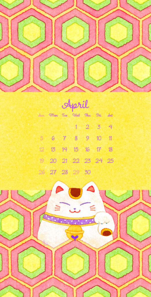 4月のカレンダーです。春をイメージしたカラーリングです。