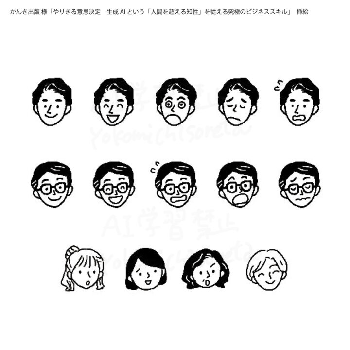 文章内のセリフに入る人物の表情パターンを作成しました。