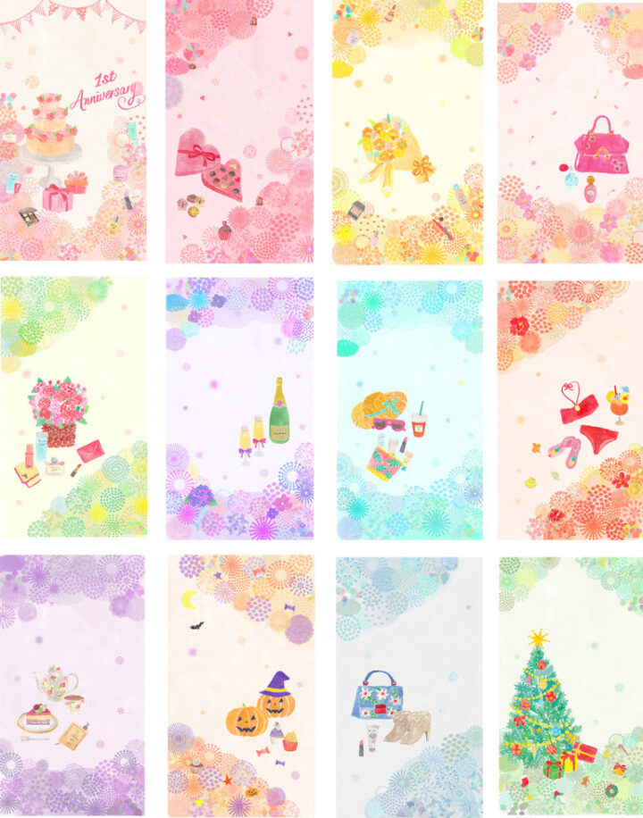 配信されましたアプリ開設1周年記念スペシャルダウンロード壁紙の絵を描かせて頂きました。
