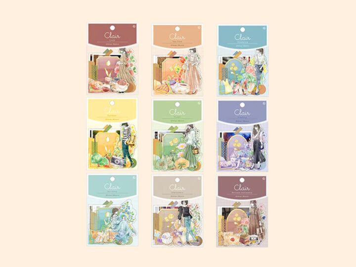 マイルーム、ステーショナリー、アンティークステーショナリーをテーマに9柄を描きました。