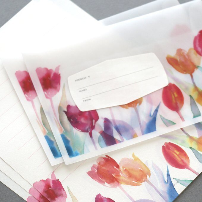 レターセット、トレーシングペーパー、メッセージカード、ポストカード、ノートと様々なアイテムに展開しました。