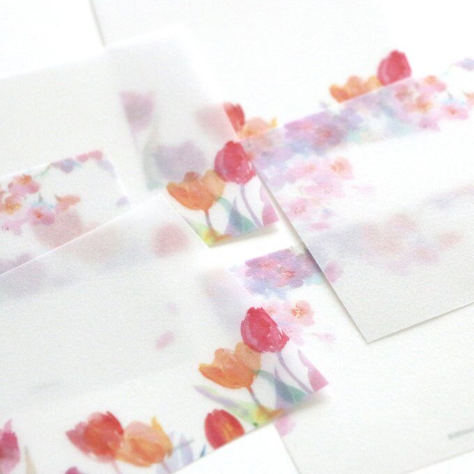 紙モノブランドmeltowの春の新作、桜とチューリップのイラストです。