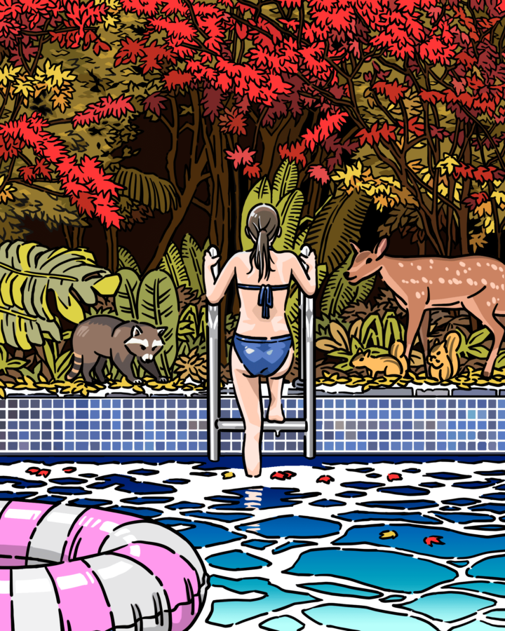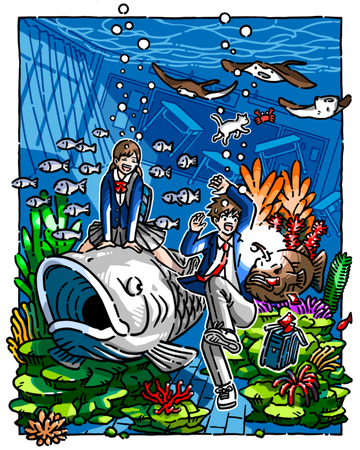 日常的なシーンをベースにしながらも、イラストの一部に非現実的な要素を組み合わせて描いてみました。