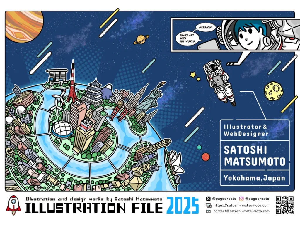 イラストレーターとして活動するためのpdfのポートフォリオの表紙イラストです。