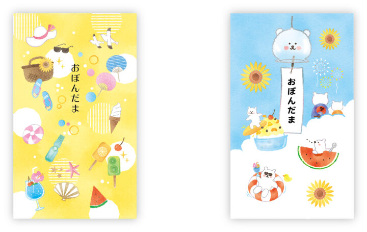 株式会社マルアイ様からのご依頼で、おぼんだま袋用のイラストとデザインを担当しました(絵柄2種類)