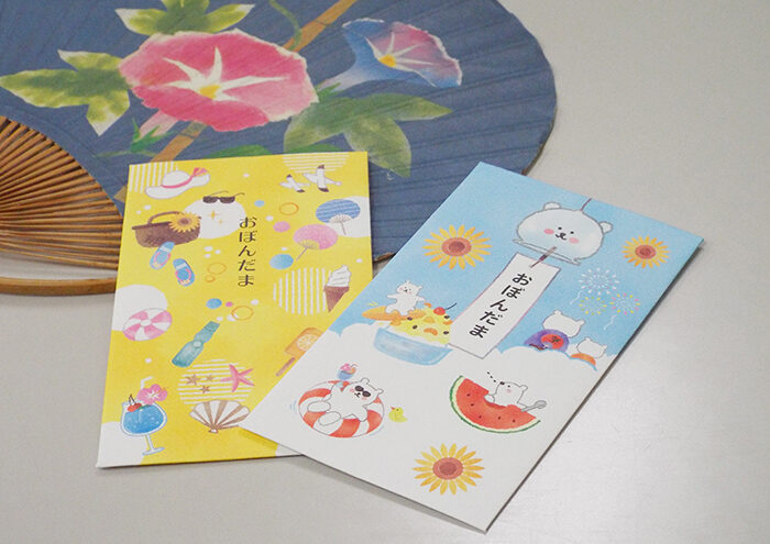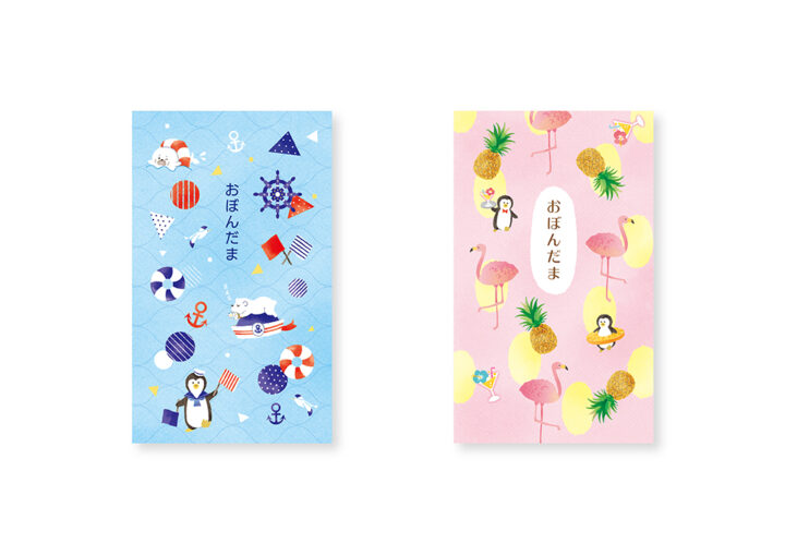 株式会社マルアイ様からのご依頼で、おぼんだま袋用のイラストとデザインを担当しました(絵柄2種類)