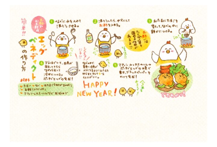 酉年用の年賀状として書いたレシピ風年賀状です。