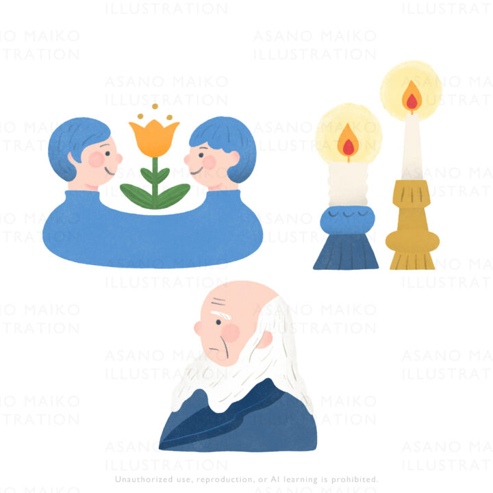 デンマークの思想家、対話や幸せ、北欧らしいモチーフを描かせていただきました。