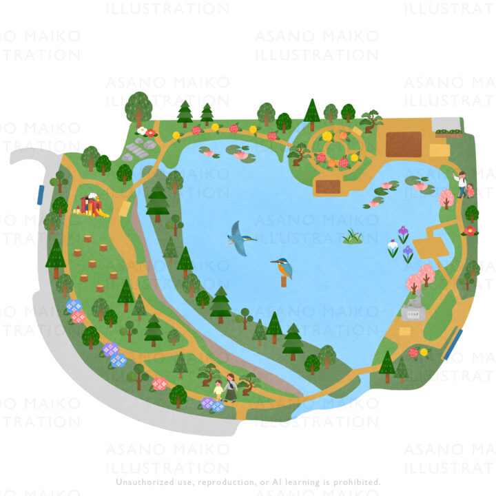 大阪府枚方市の5つの都市公園の情報・魅力発信サイト「Go! myPARK」のカットイラスト・公園マップを担当しました。