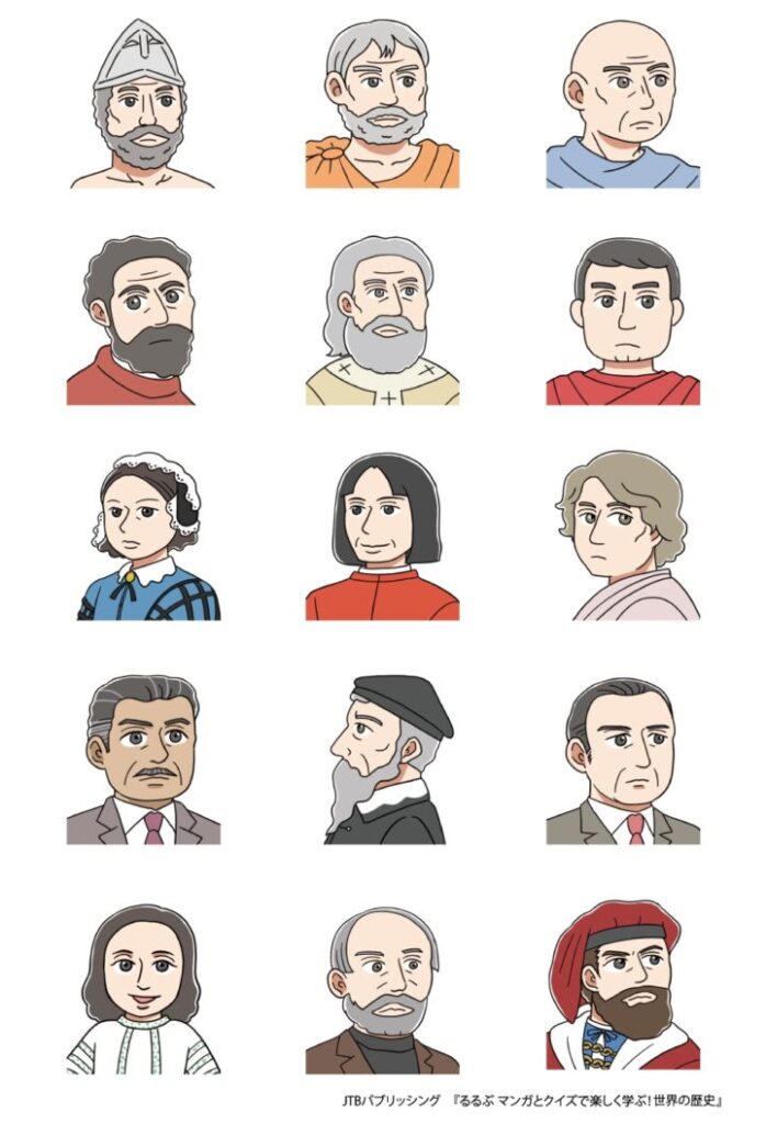 「るるぶマンガとクイズで楽しく学ぶ!世界の歴史」(JTBパブリッシング様)にて歴史上の人物の似顔絵を担当しました。