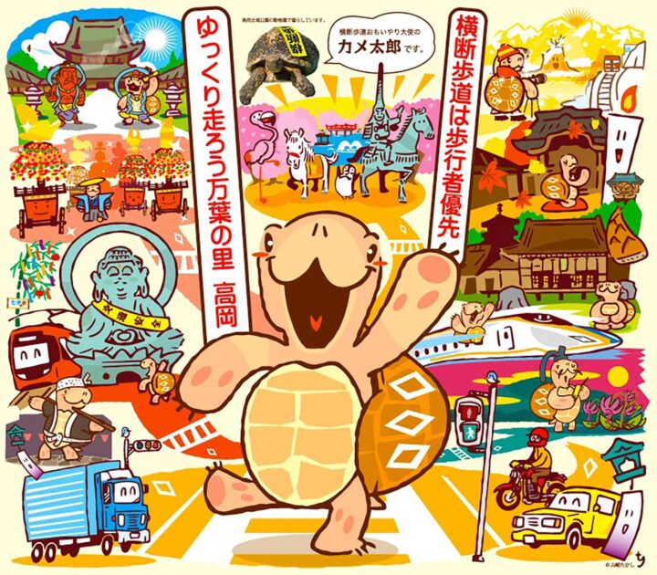 横断歩道思いやり大使カメ太郎ポスターイラストとキャラクターデザイン