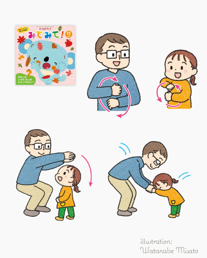 親子で体遊びのコーナーのイラストを担当させていただきました。