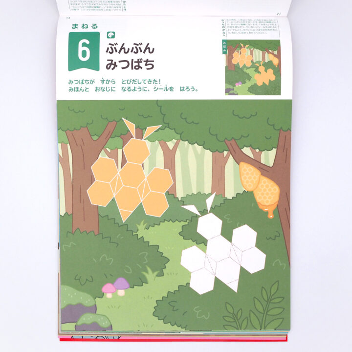 見本を見て、同じようにシールを貼るページや