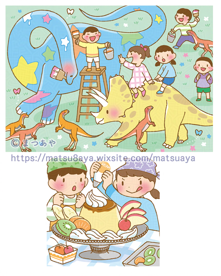 イラストは動物、子供、食べ物、似顔絵のモチーフを得意としており、