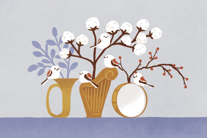 クラシック音楽にまつわるモチーフ×動物 というテーマで、季節ごとにイラストを6点ずつ制作しました。