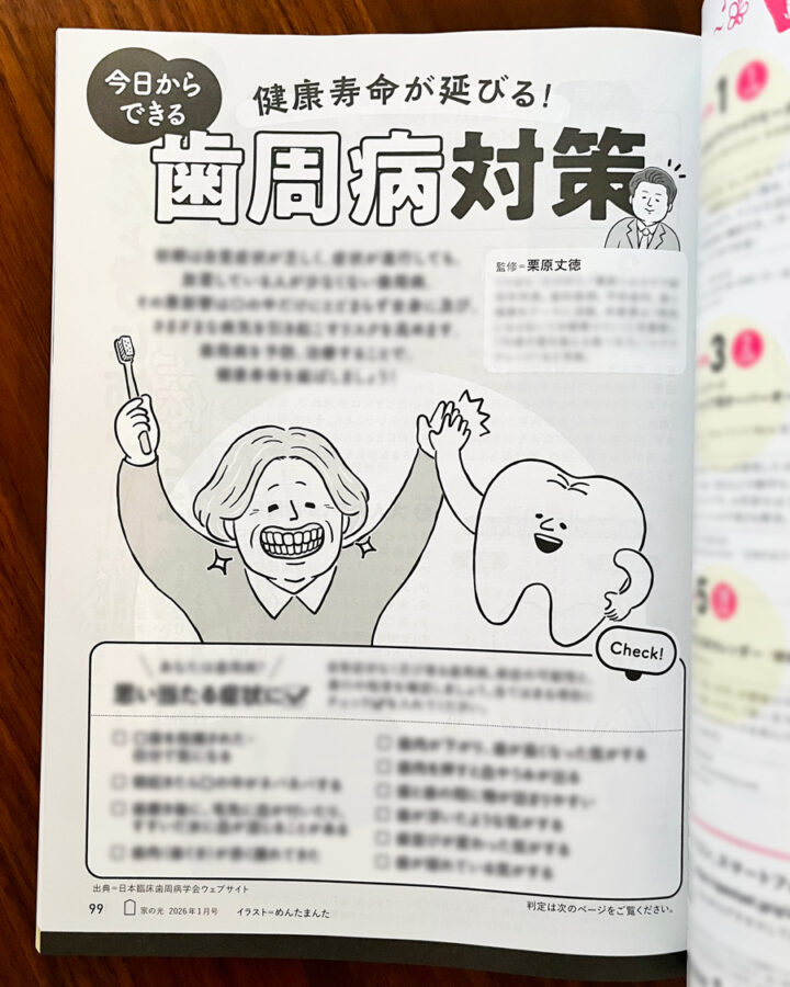JAグループの雑誌『家の光』1月号「歯周病対策」特集にて、イラストを担当しました。