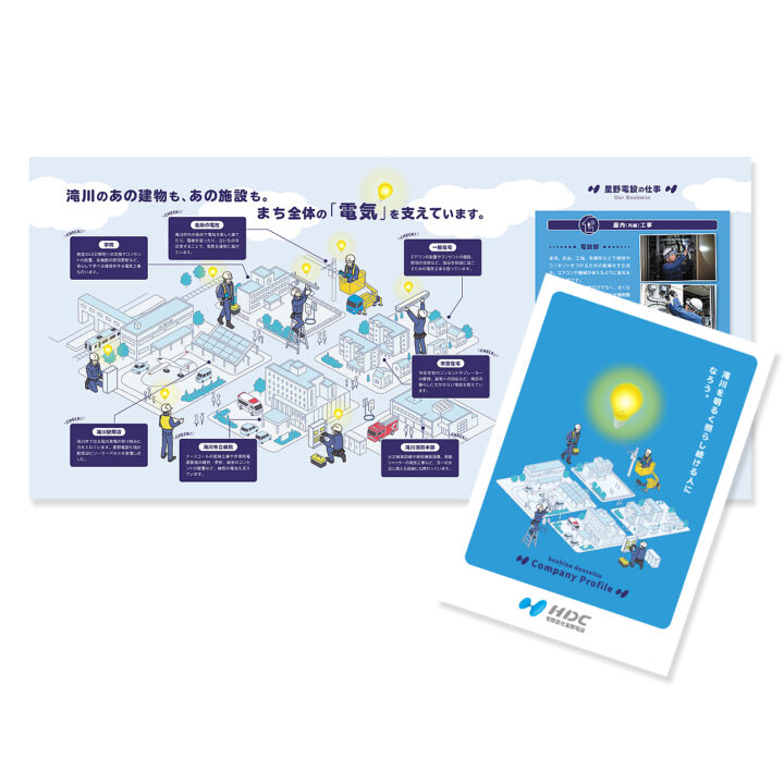 星野電設様の会社案内パンフレット イラストを担当いたしました。