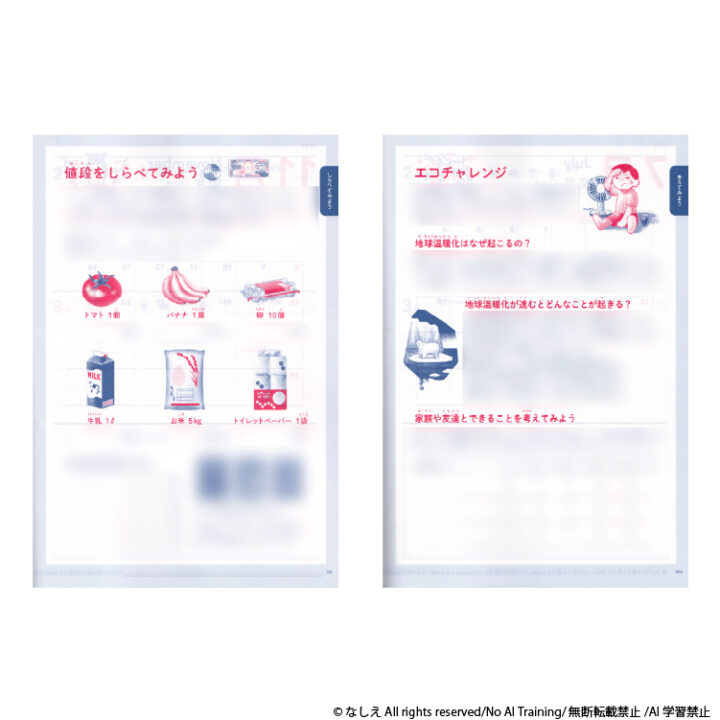 For Fujin no Tomosha Co., Ltd.’s “Children’s Daily Life Diary 2026 Edition,” I created 19 cut illustrations. Printed in two colors, I aimed for a realistic yet approachable style.