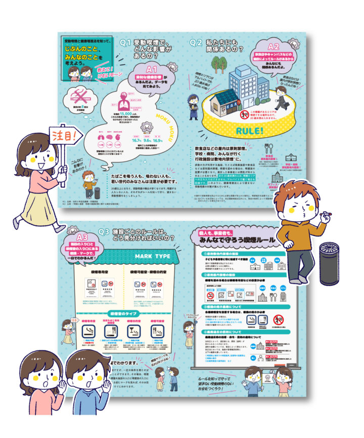 大学生向けの受動喫煙対策パンフレットにて、イラスト13点を担当いたしました。
